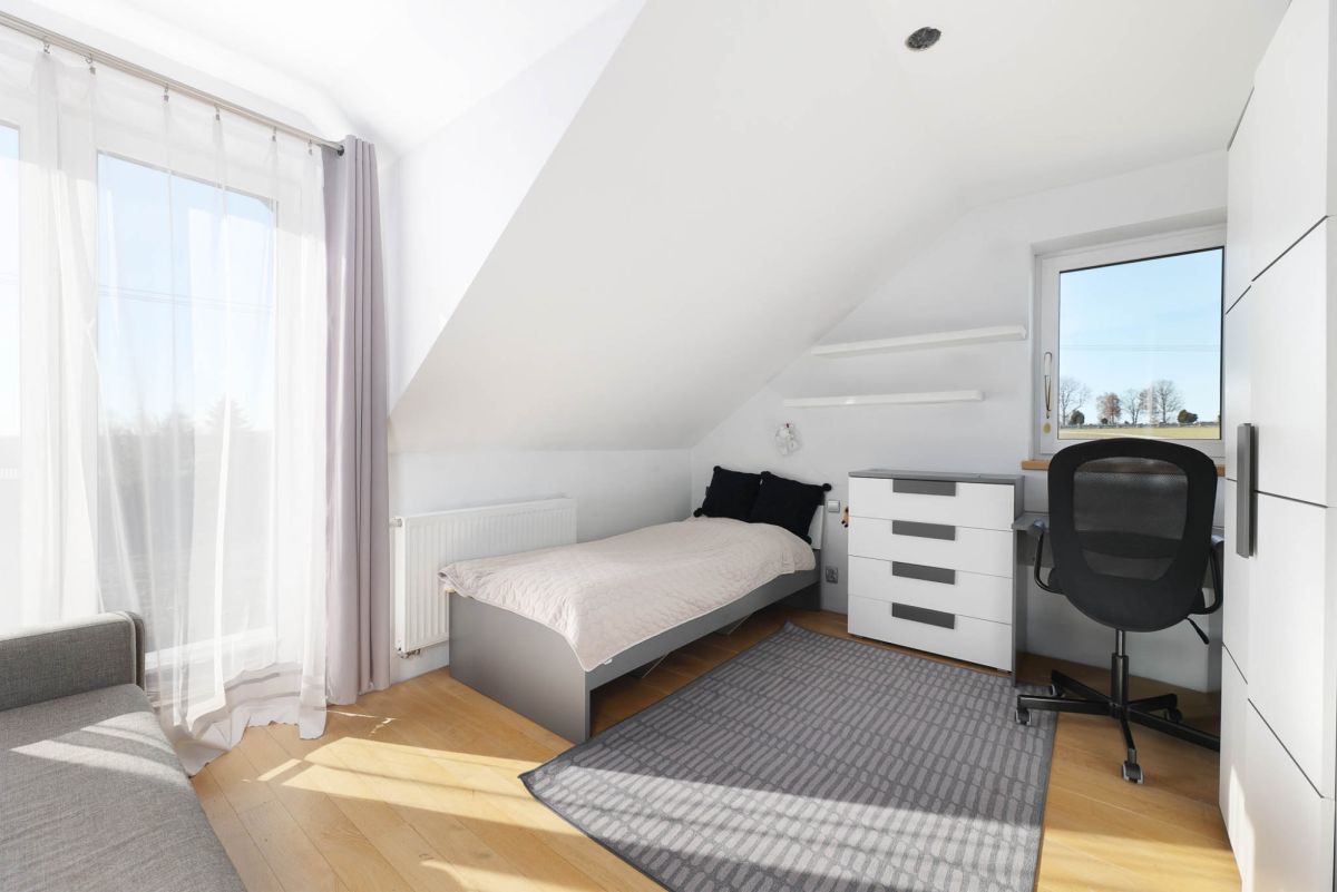 Dom jest gotowy do zamieszkania, jednak wymaga odświeżenia według własnych preferencji przyszłych właścicieli. Warto również zaznaczyć, że balkony nie posiadają obecnie balustrad, co daje możliwość ich wykonania zgodnie z indywidualną koncepcją aranżacyjną.