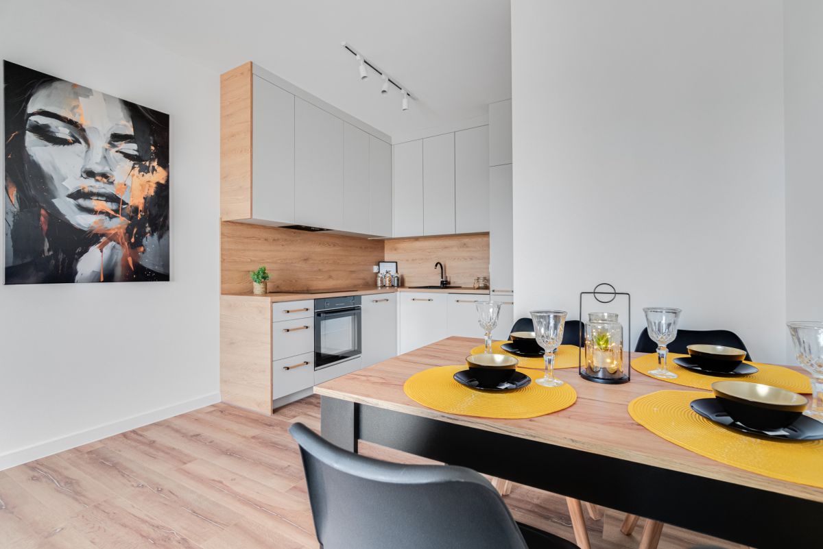 Dzięki przemyślanemu układowi pomieszczeń mieszkanie jest bardzo ustawne i wygodne w codziennym użytkowaniu. Duże przeszklenia zapewniają doskonałe doświetlenie wnętrz, a balkony stanowią dodatkową przestrzeń do wypoczynku.