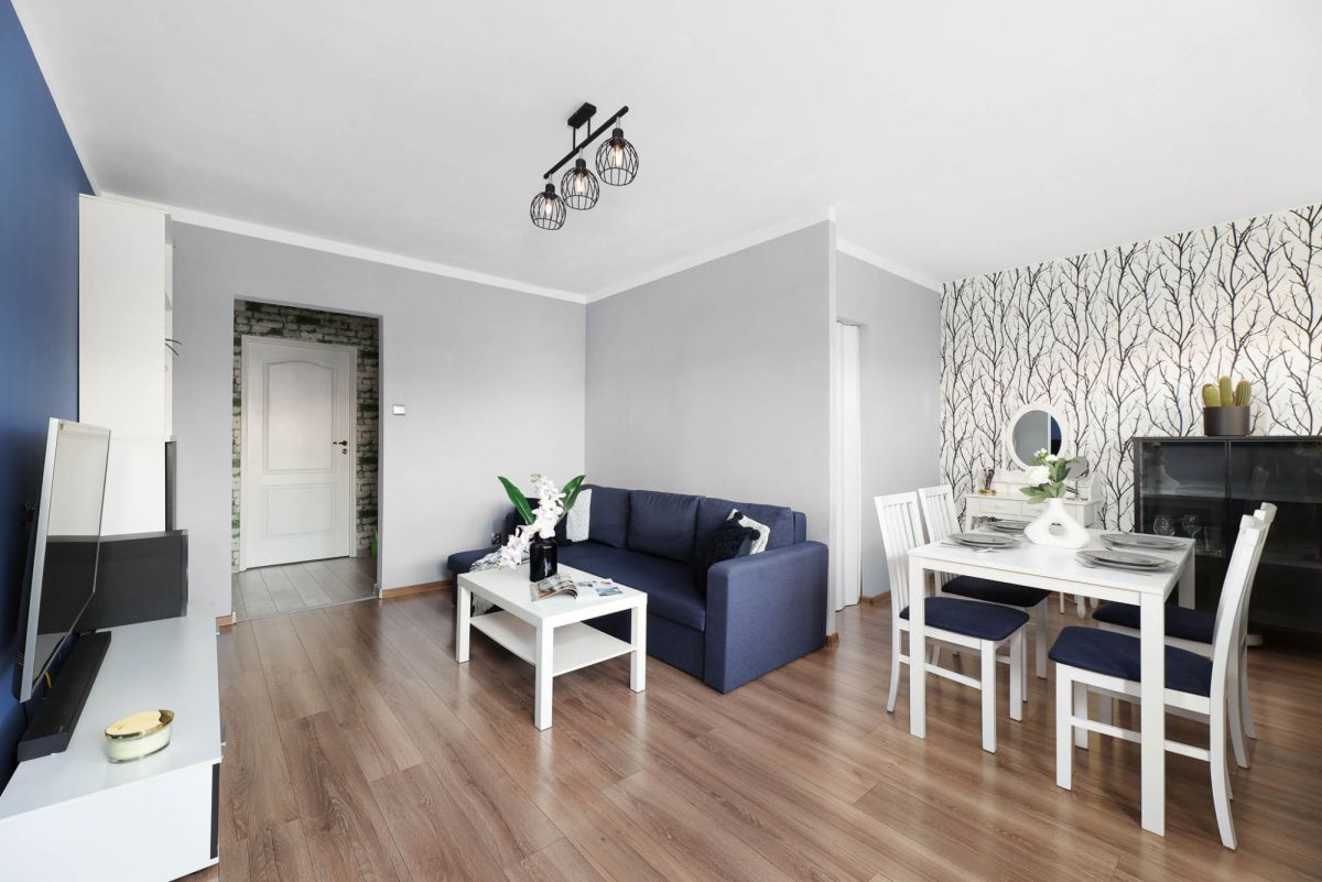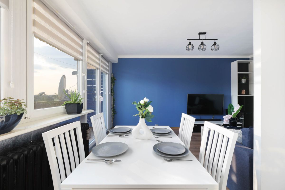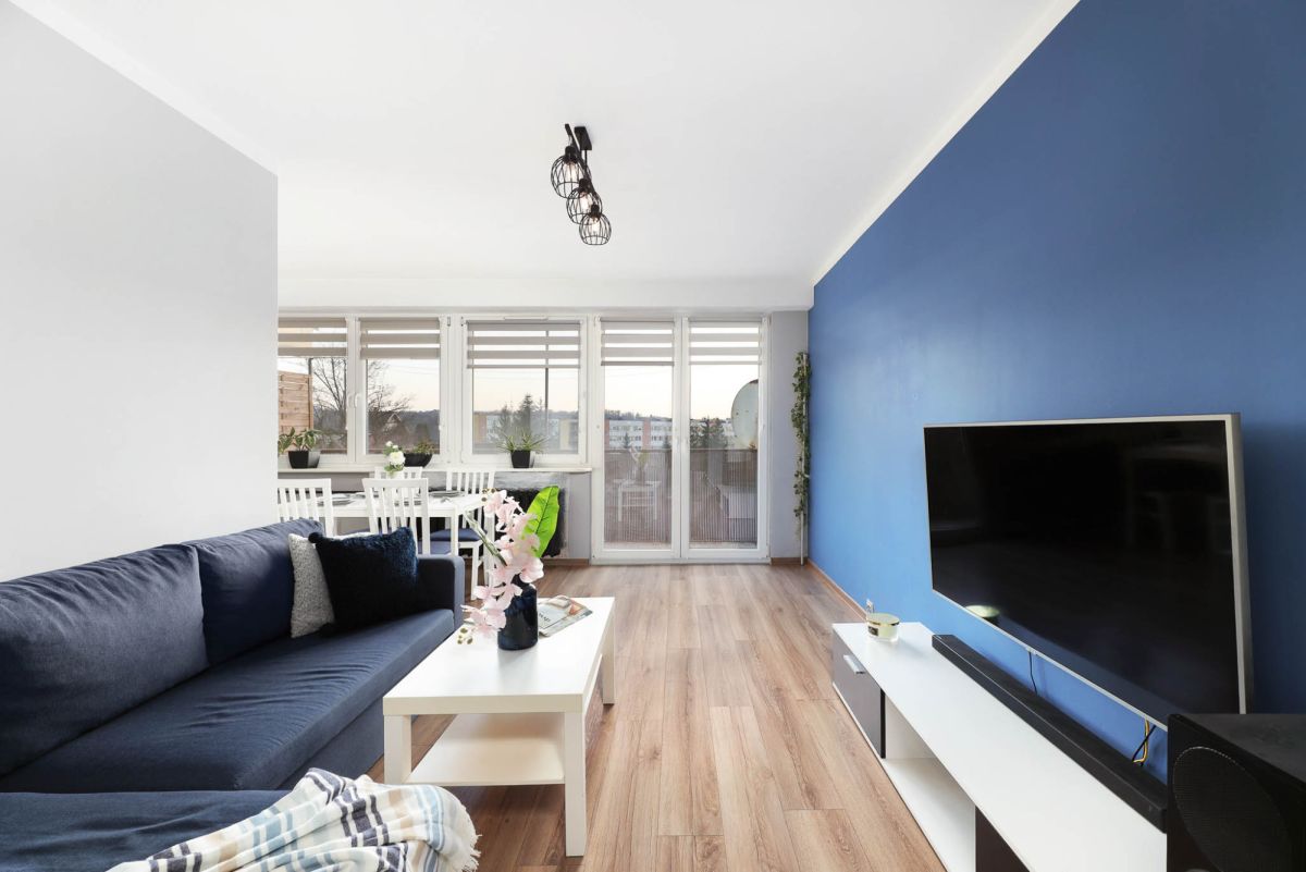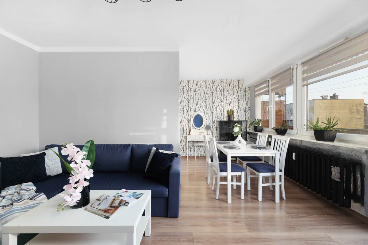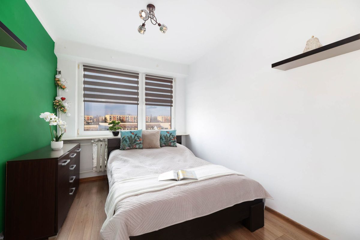 Mieszkanie posiada dwustronną ekspozycję okien (północ – południe), dzięki czemu wnętrza są dobrze doświetlone o różnych porach dnia. Funkcjonalny układ pomieszczeń sprawia, że lokal jest komfortowy zarówno dla pary, singla, jak i jako inwestycja pod wynajem.