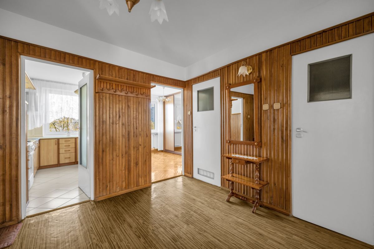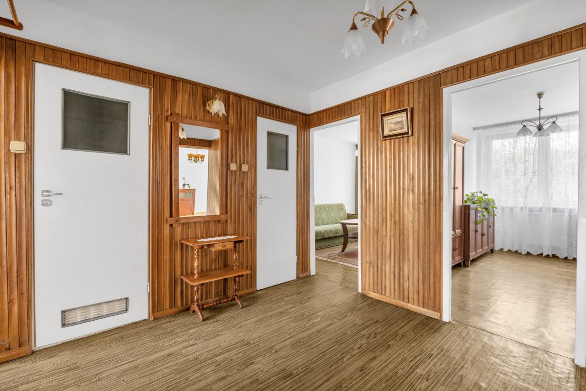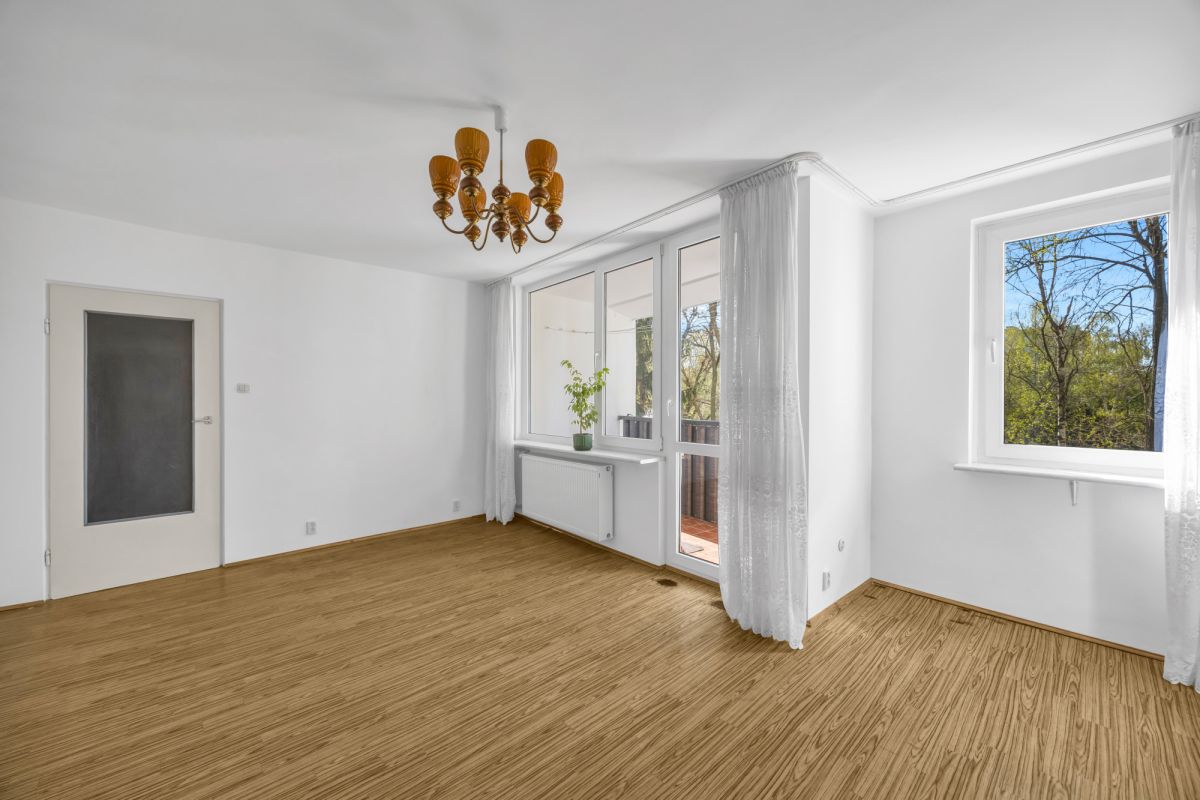 Mieszkanie znajduje się na 2. piętrze w 8-piętrowym budynku z 1978 roku. Jest jasne i ustawne, z dużym potencjałem do odświeżenia lub modernizacji według własnych potrzeb. Ekspozycja dwustronna – kuchnia oraz jedna z sypialni od strony północnej, pozostałe pomieszczenia wraz z balkonem od strony południowej.