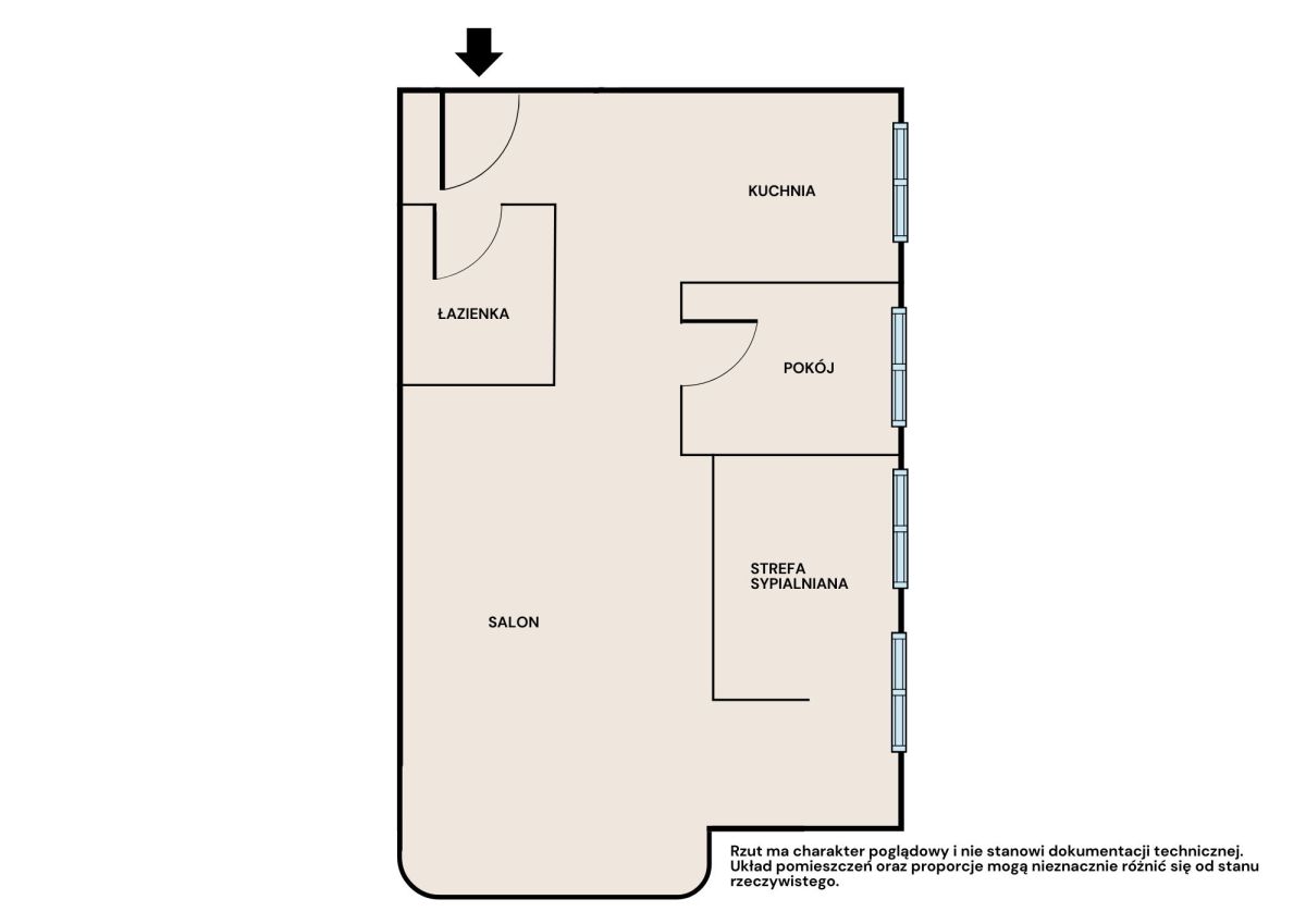 Mieszkanie o powierzchni 55 m² składa się z:
