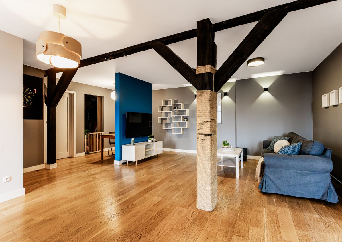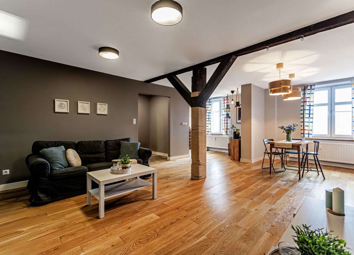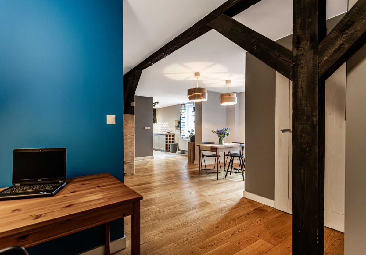 W lokalu został przeprowadzony generalny remont obejmujący kompleksową modernizację, dzięki czemu wnętrza są zadbane i spójne stylistycznie. Na szczególną uwagę zasługują drewniane podłogi, które nadają pomieszczeniom elegancji oraz ponadczasowego charakteru.