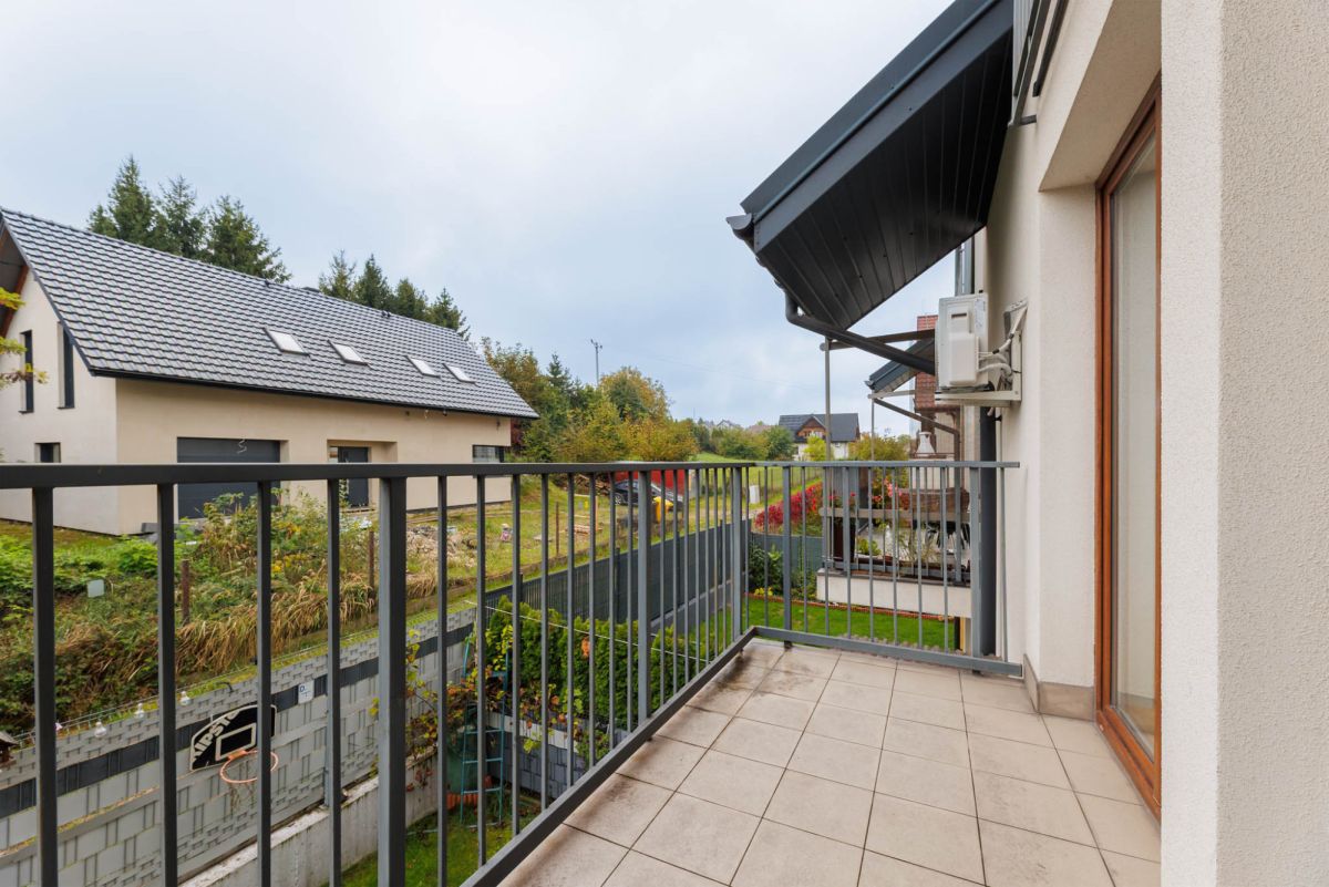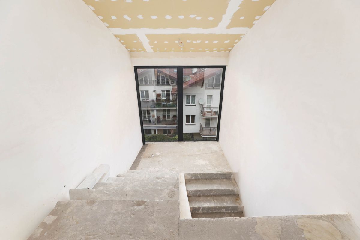 Mieszkanie znajduje się w zabudowie szeregowej na osiedlu z 2017 roku. Lokal składa się z dwóch niezależnych poziomów: parter został w pełni wykończony i jest gotowy do zamieszkania, natomiast piętro pozostaje w stanie deweloperskim, dając możliwość dowolnej aranżacji. Oba poziomy posiadają osobne wejścia z klatki schodowej, co ułatwia podział na dwa mieszkania. Osiedle jest spokojne, dobrze skomunikowane, z szybkim dojazdem do centrum Krakowa i pełną infrastrukturą w pobliżu.