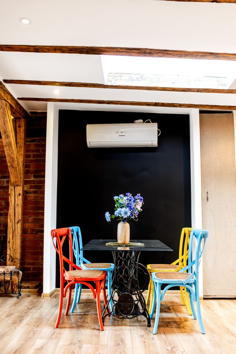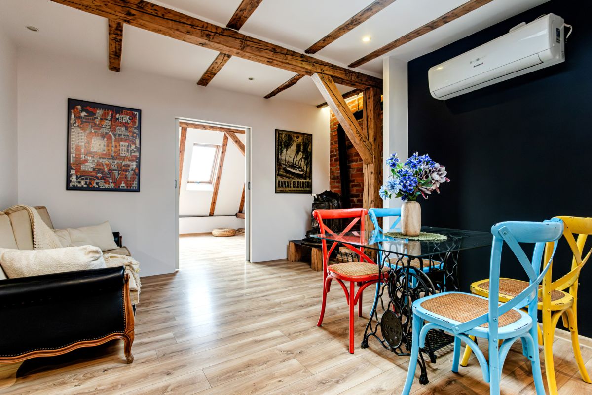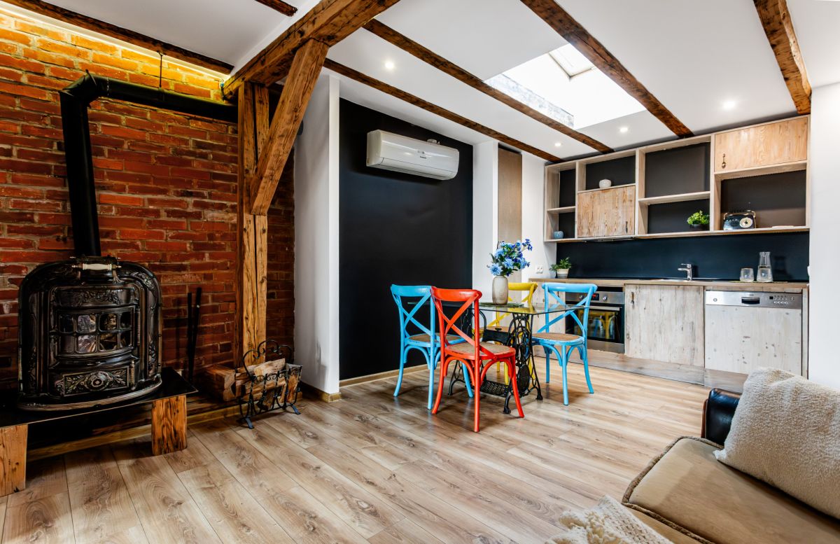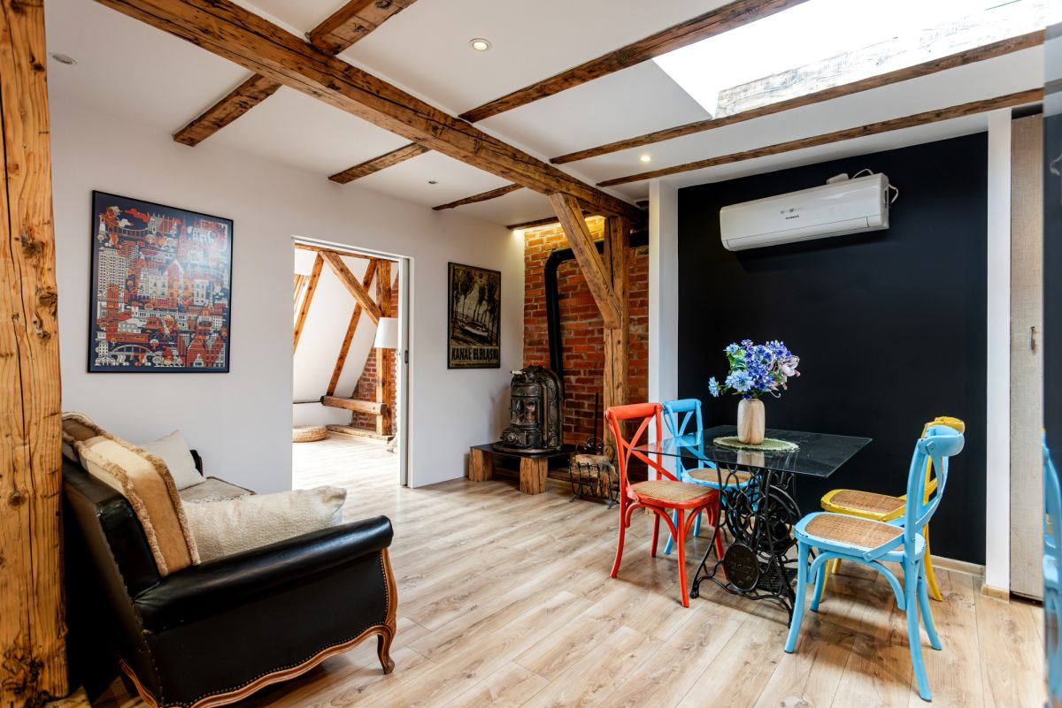 Mieszkanie jest bardzo słoneczne dzięki oknom dachowym, a odświeżenie wykonane w sierpniu 2025 r. pozwala nowemu właścicielowi wprowadzić się bez nakładów. Wnętrza zdobi oryginalna cegła, która nadaje przestrzeni niepowtarzalny klimat. Lokal wyposażony jest w klimatyzację, plastikowe okna oraz elektryczne ogrzewanie sufitowe – wydajne, estetyczne i bez grzejników. Istnieje możliwość wynajęcia pomieszczenia gospodarczegow piwnicy. Stylowa, odnowiona kamienica wyróżnia się pięknymi detalami architektonicznymi i zadbanymi częściami wspólnymi. Wewnętrzny dziedziniec z zielenią, miejscami do siedzenia i stojakami rowerowymi tworzy spokojną przestrzeń do odpoczynku w sercu miasta.