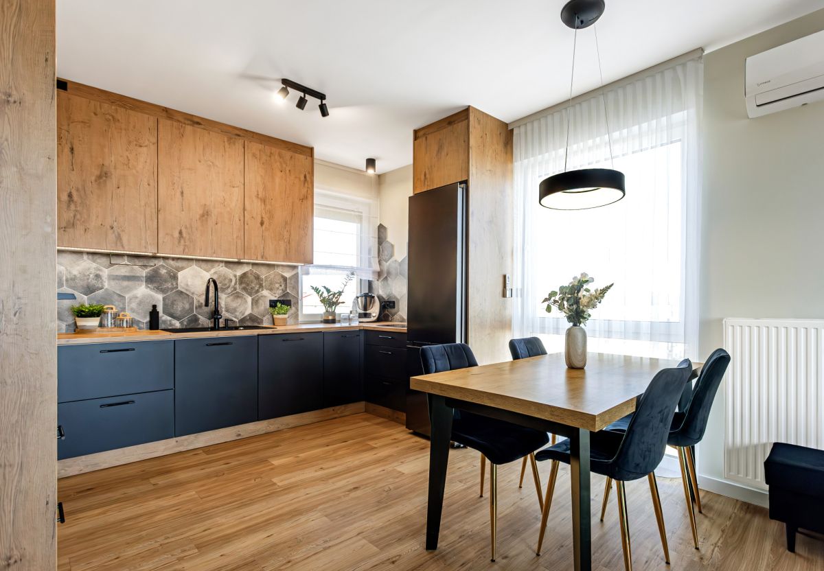Mieszkanie zostało wyposażone w klimatyzację, która znacząco podnosi komfort w cieplejsze dni, a ogrzewanie miejskie zapewnia wygodę i bezobsługowe użytkowanie przez cały rok.