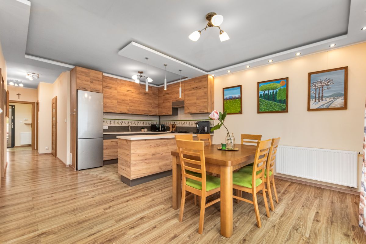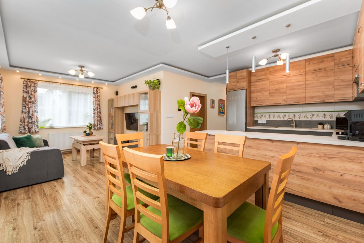 Dodatkowym atutem jest prywatny ogród o powierzchni ok. 110 m² oraz taras, które tworzą idealną przestrzeń do wypoczynku. Do dyspozycji właściciela pozostaje ogrodzony teren postojowy o powierzchni ok. 60 m² oraz miejsca postojowe przed budynkiem.